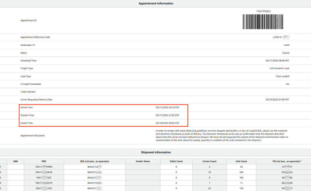 LAX9之所以難送,是因?yàn)槠浔瑐}推約刪約常態(tài)化,也是目前送倉排隊(duì)時(shí)間久的倉庫之一,許多同行已經(jīng)采取亞馬遜提貨的方式交倉,LAX9院子里堆滿Amazon freight的貨箱待卸貨(如圖3),為保障客戶時(shí)效,德速仍堅(jiān)持自送倉,雖然也遭遇亞馬遜臨時(shí)變更預(yù)約時(shí)間,好在有CULine團(tuán)隊(duì)支持和車隊(duì)緊密配合,最終貨柜趕上預(yù)約時(shí)間按要求送達(dá),客戶在中國時(shí)間18日上午就開始反饋有上架。